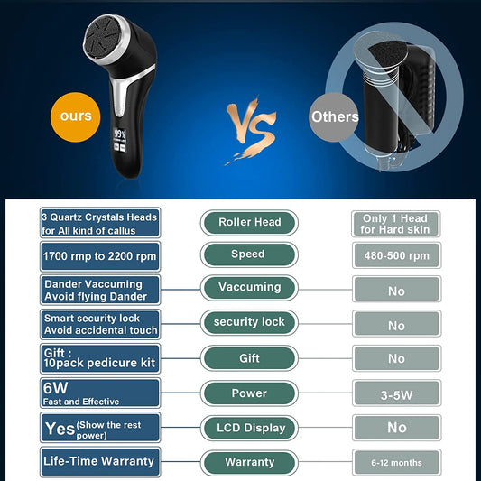 Electric Callus Remover for Feet, Portable Pedicure Kit Foot File Callus Remover, Rechargeable Waterproof Foot File for Foot Care Deadskin Remover with 3Head & LCD Display